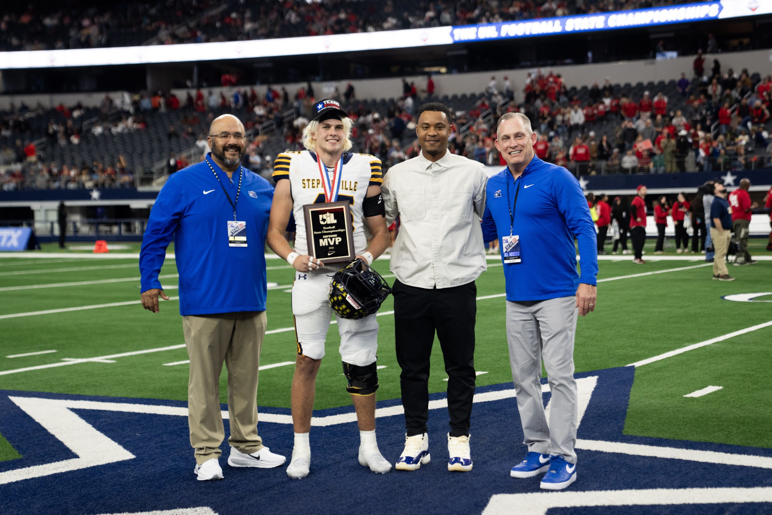 Stephenville leaned all the way into its identity Friday afternoon at AT&T Stadium, riding a relentless defense and timely offense to a 10-0 win over Kilgore in the UIL Class 4A Division I state championship. The victory delivered the seventh state title in program history and capped a perfect 16-0 season for the Yellow Jackets.