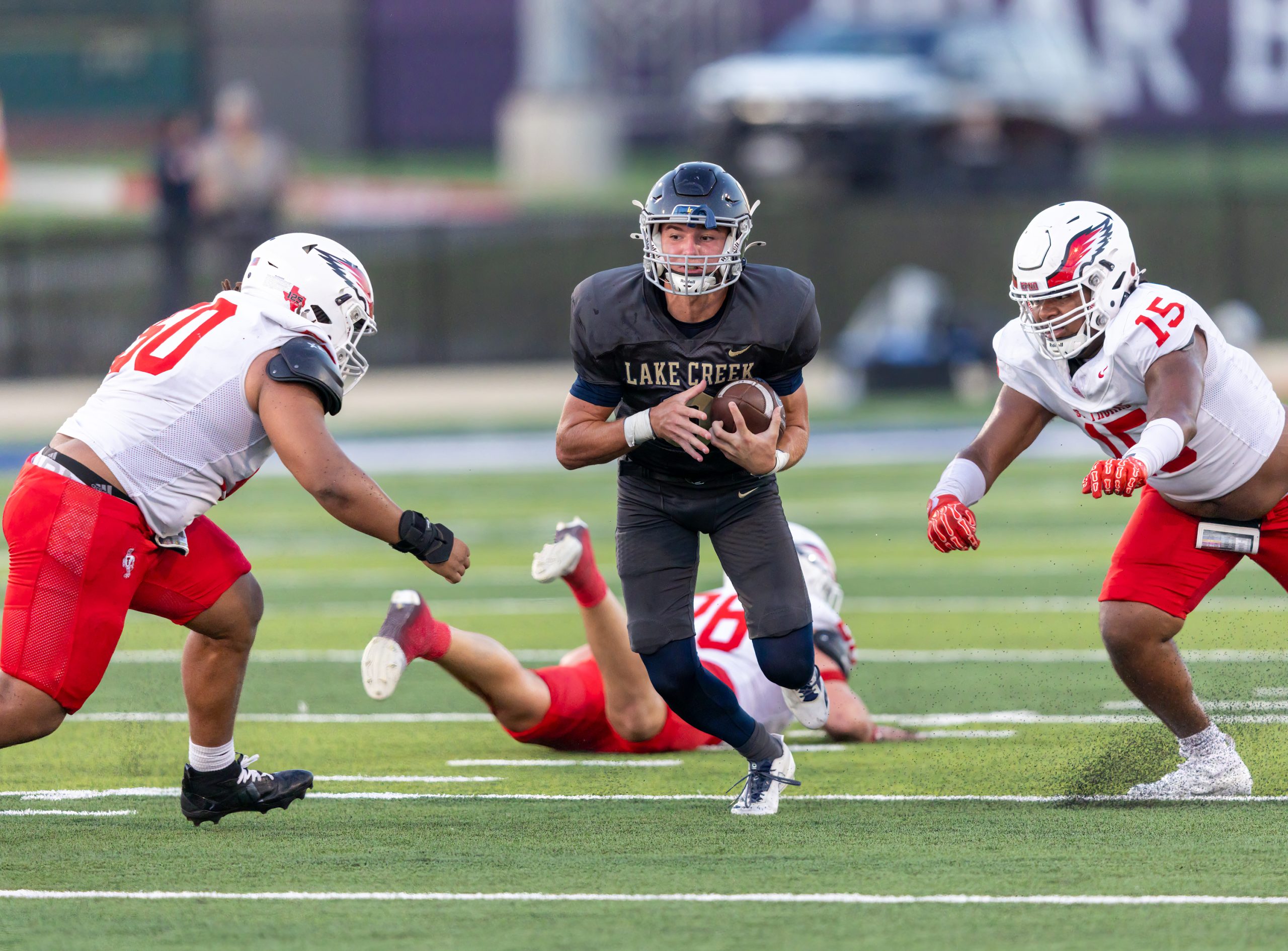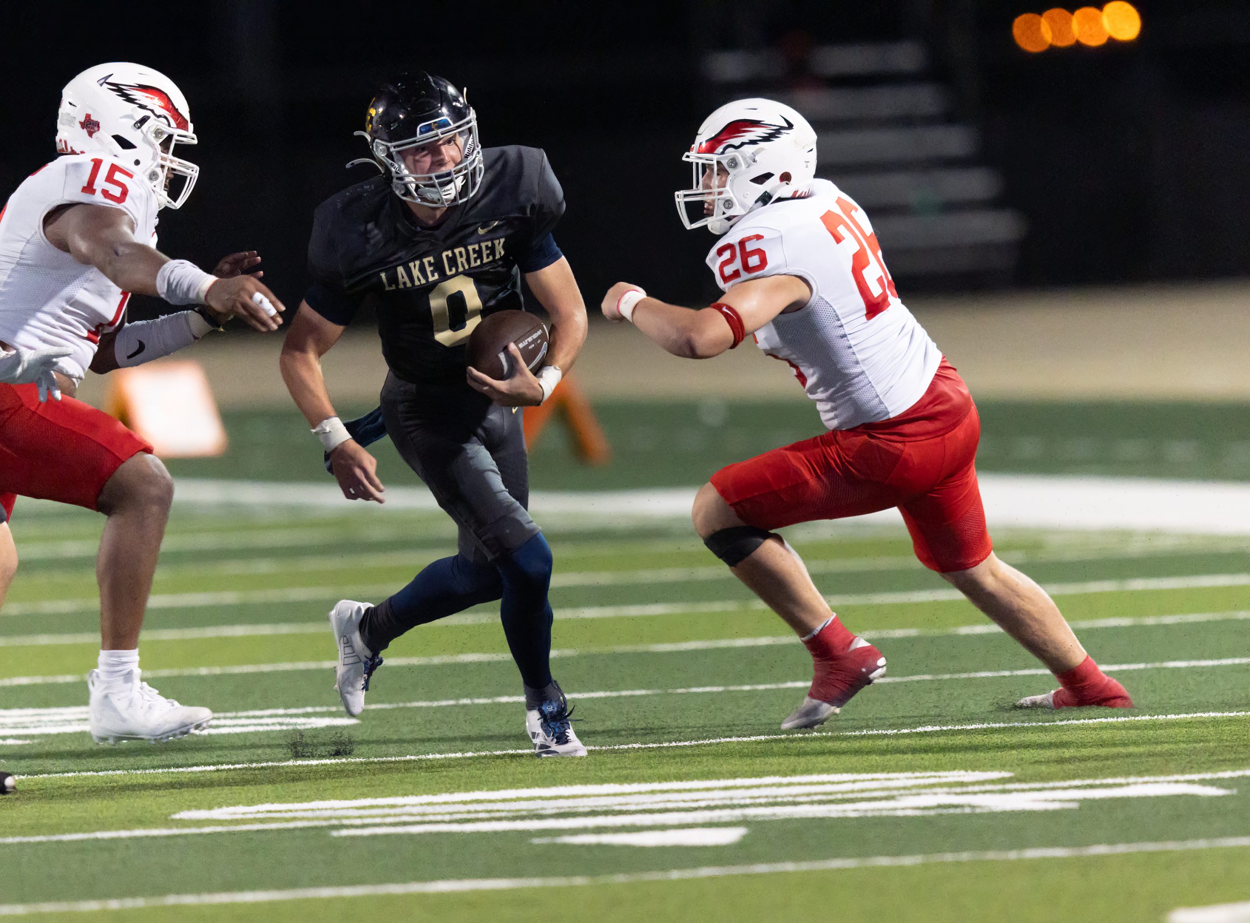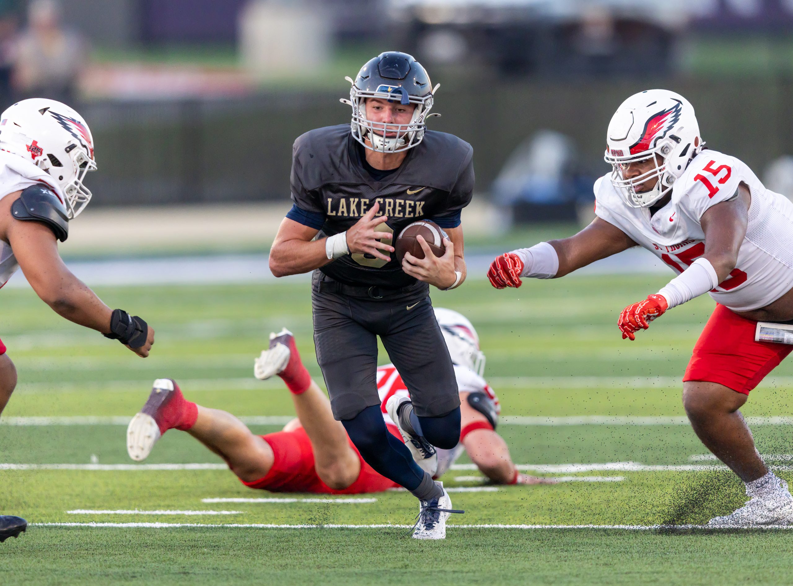 The Houston St. Thomas Eagles beat the Montgomery Lake Creek Lions 18 -0.