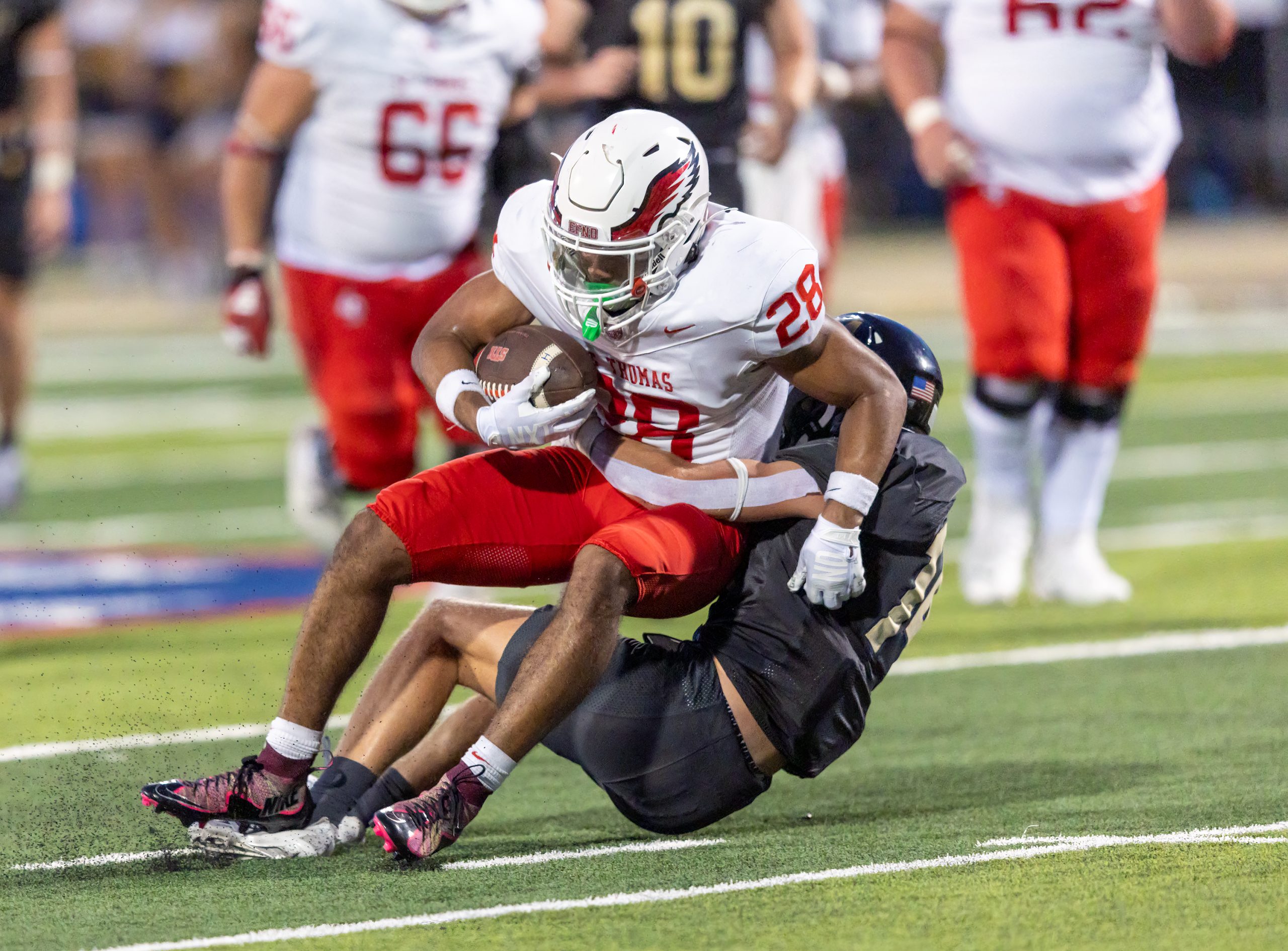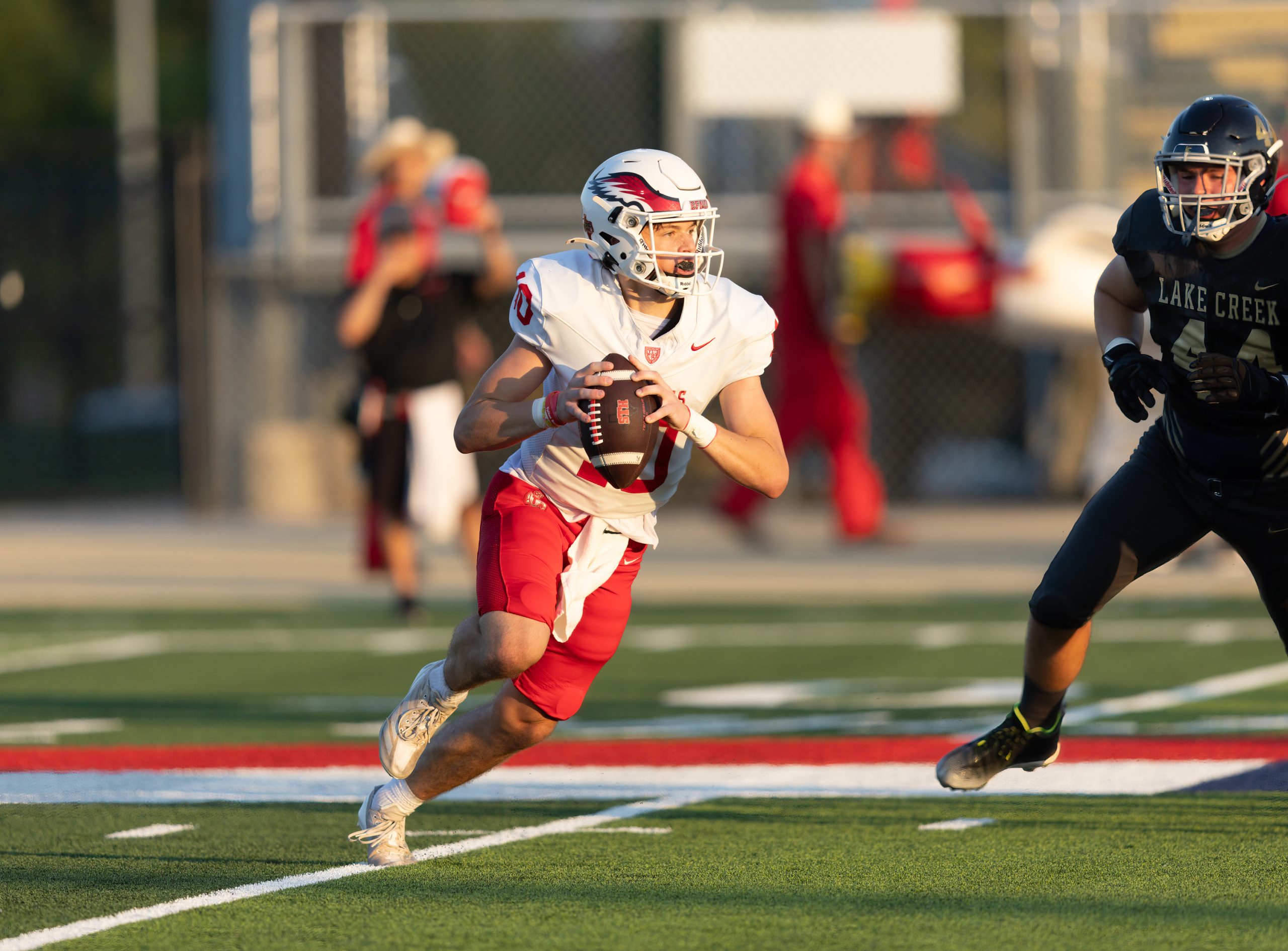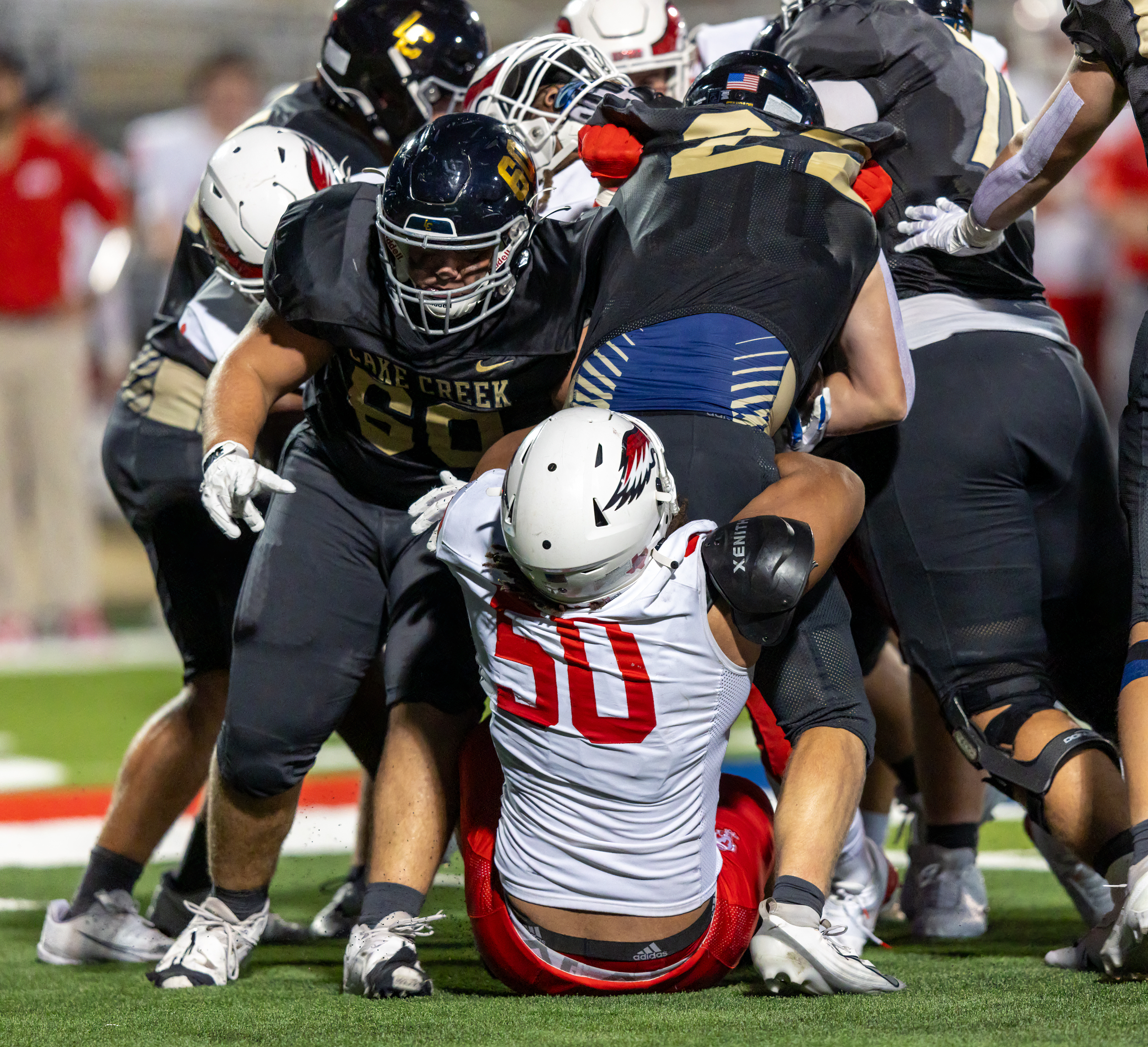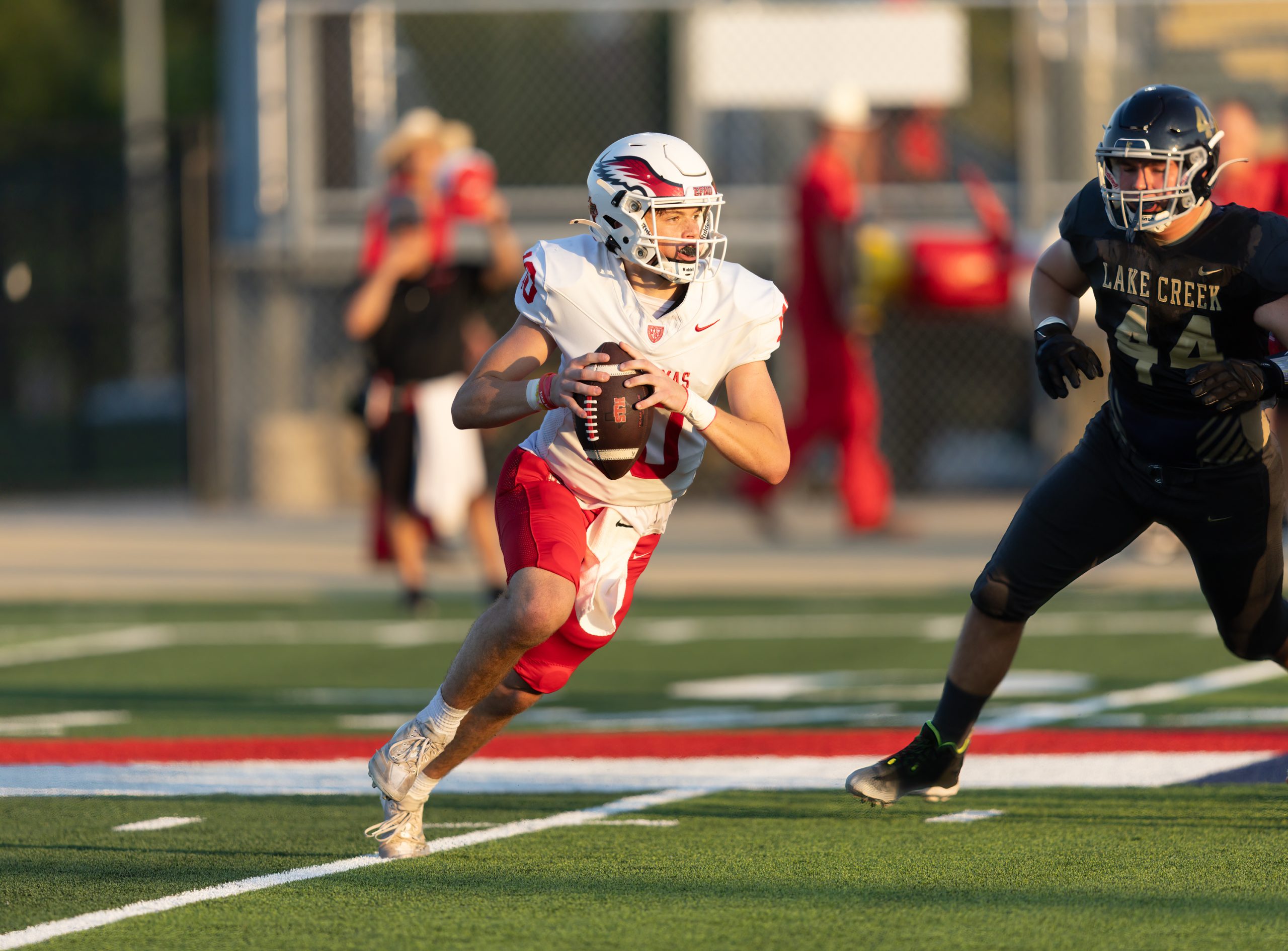 The Houston St. Thomas Eagles beat the Montgomery Lake Creek Lions 18 -0.