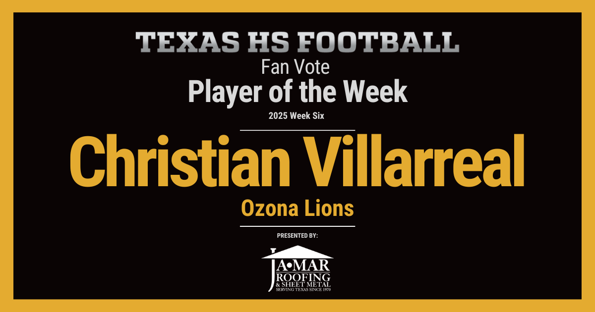 The Winner of the Week 6 Fan Vote Player of the Week is Christian Villarreal from the Ozona Lions.